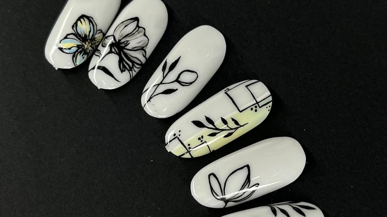 Curso creativo enfocado en diseños minimalistas y elegantes inspirados en la naturaleza, perfectos para tendencias modernas de nail art.