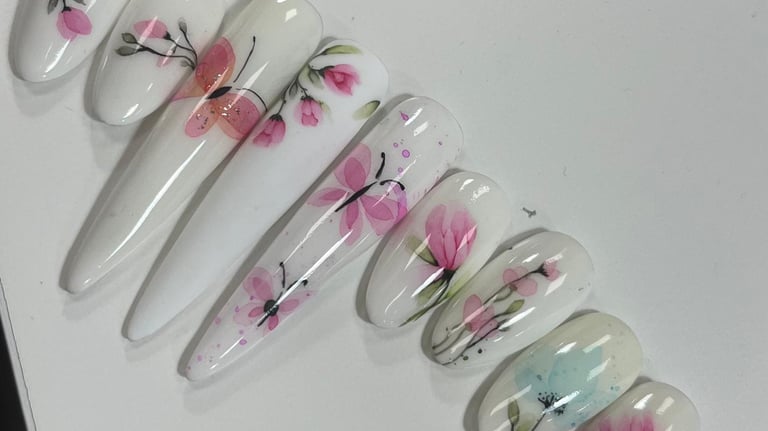 Aprende a crear delicados diseños florales con efecto acuarela en uñas, combinando colores suaves y técnicas profesionales para lograr acabados elegantes, modernos y artísticos.